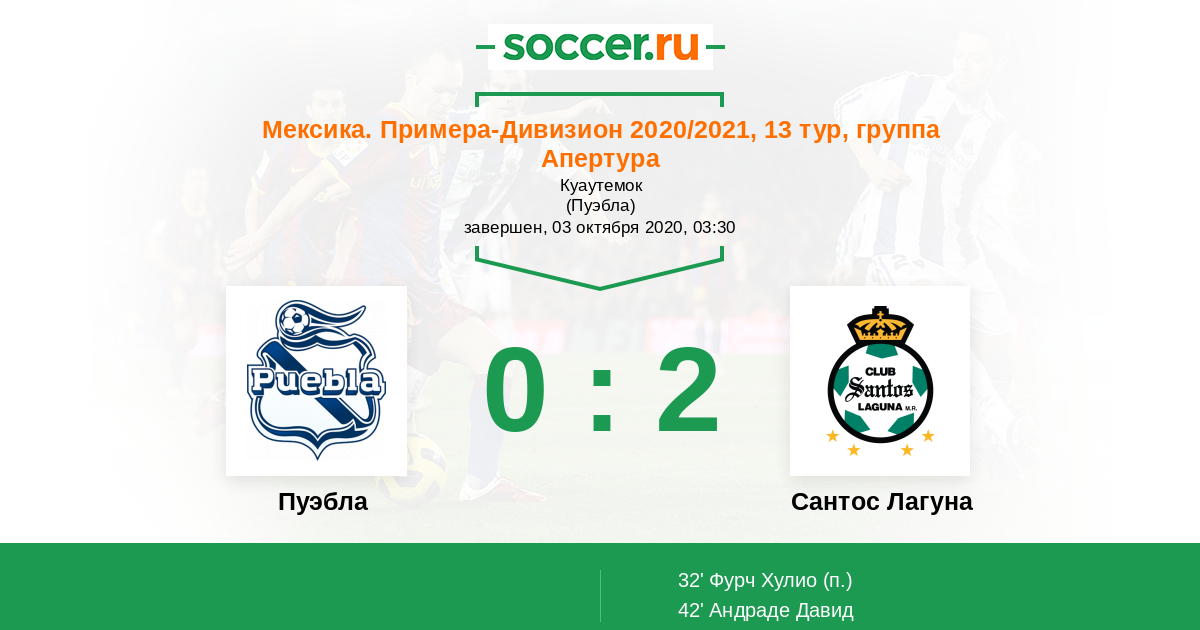 Протокол матча Пуэбла против Сантос Лагуна