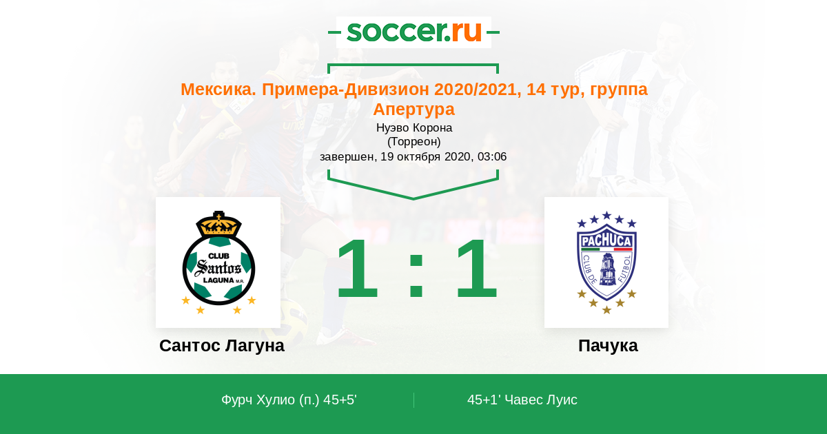 Протокол матча Сантос Лагуна против Пачука