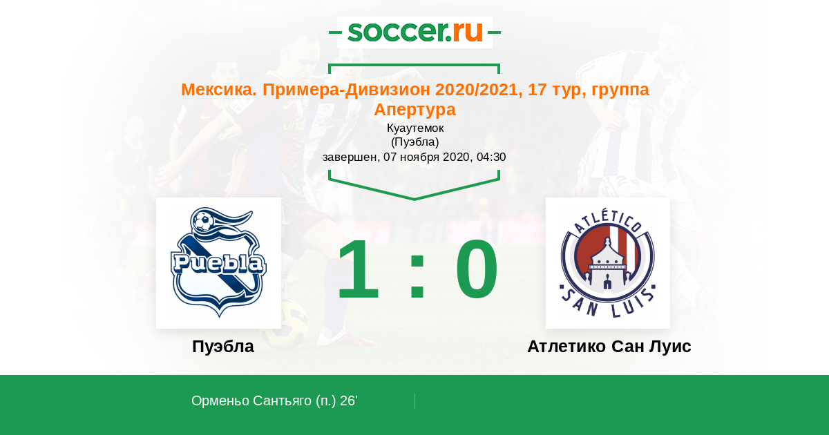 Протокол матча Пуэбла против Атлетико Сан Луис