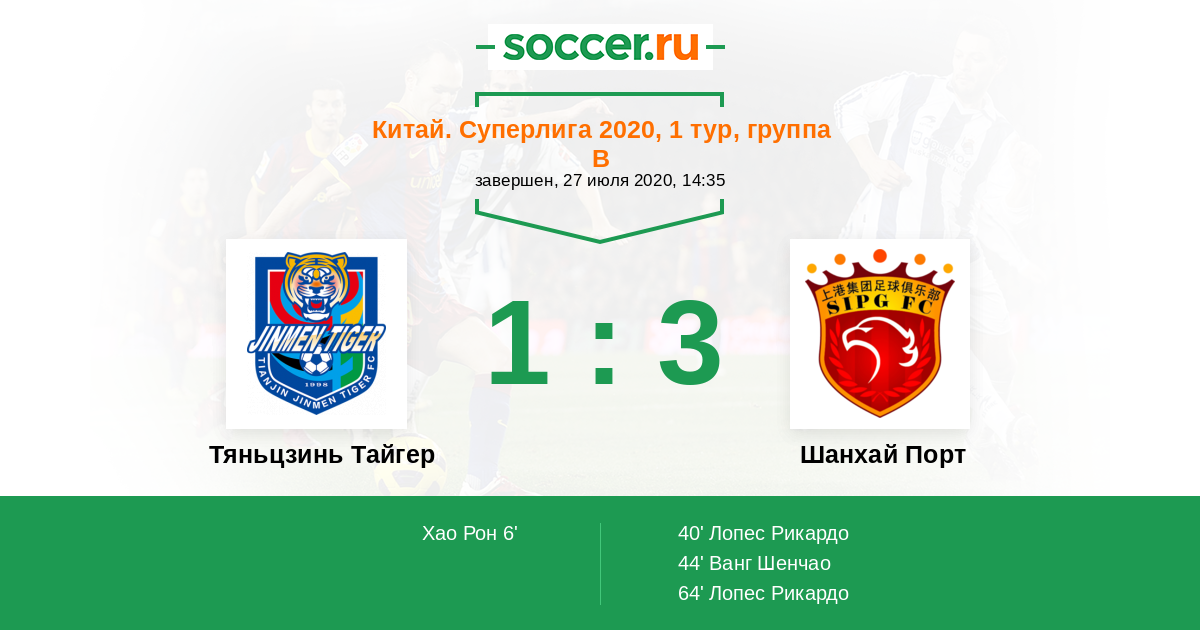 Протокол матча Тяньцзинь Тайгер против Шанхай Порт