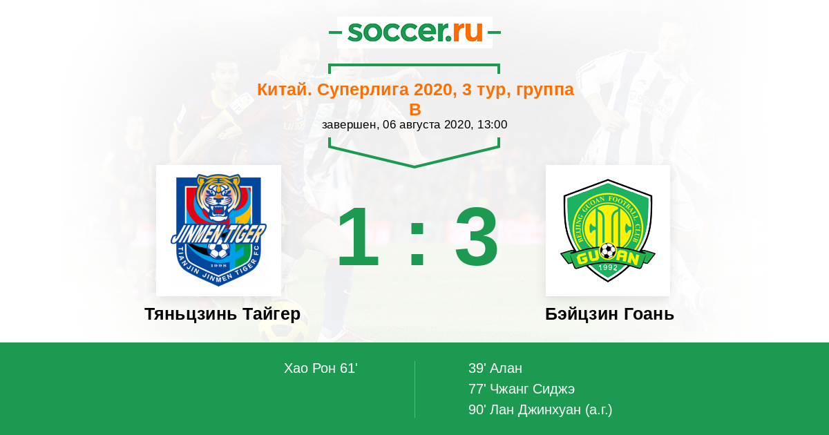 Протокол матча Тяньцзинь Тайгер против Бэйцзин Гоань