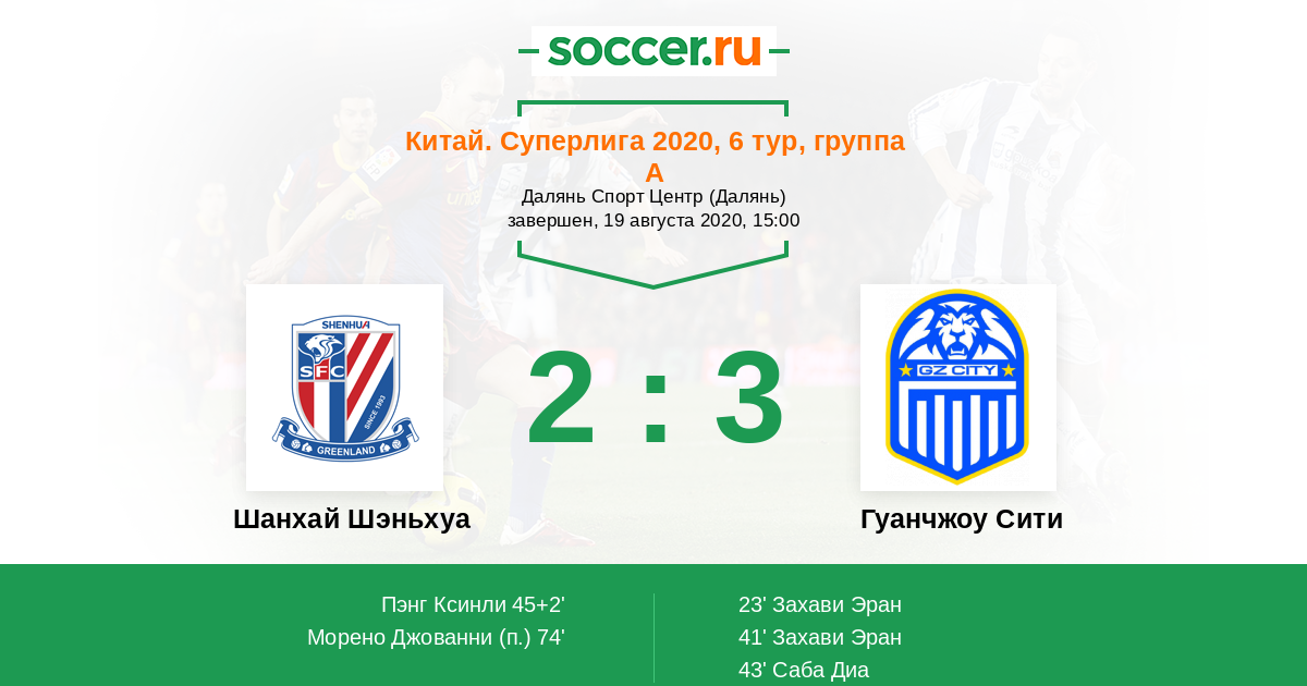 Протокол матча Шанхай Шэньхуа против Гуанчжоу Сити