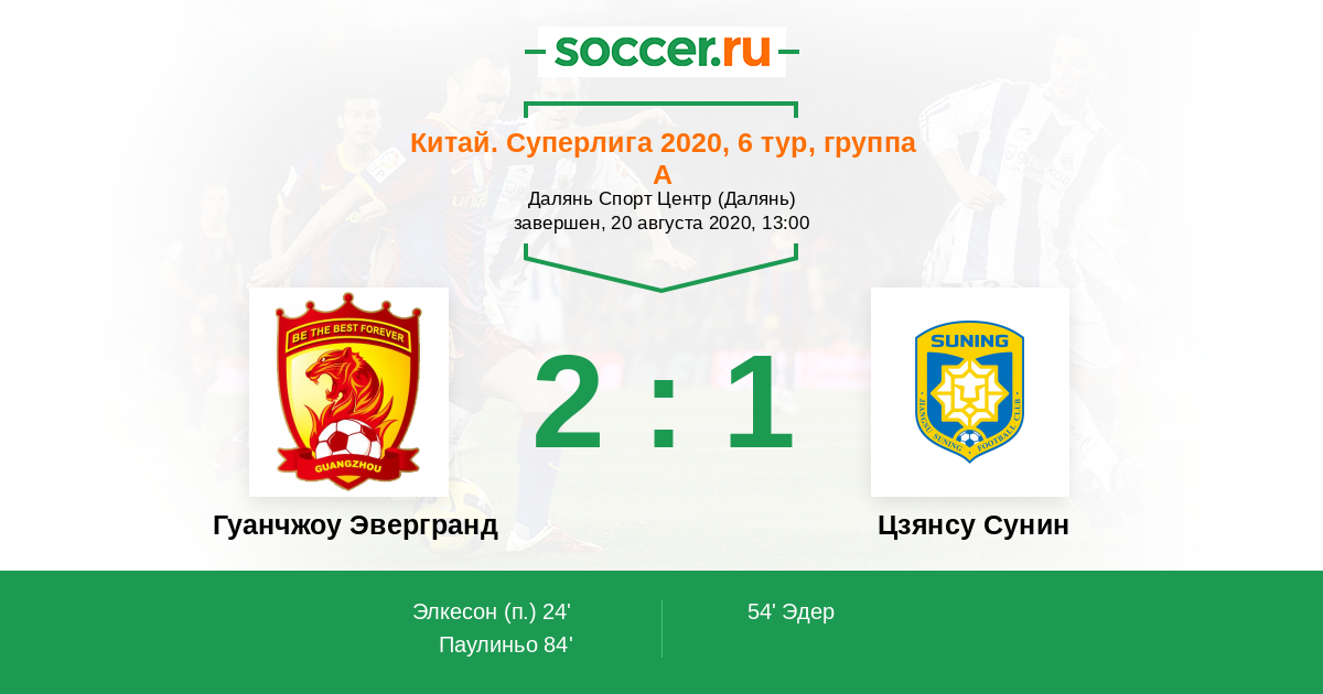 Протокол матча Гуанчжоу Эвергранд против Цзянсу Сунин