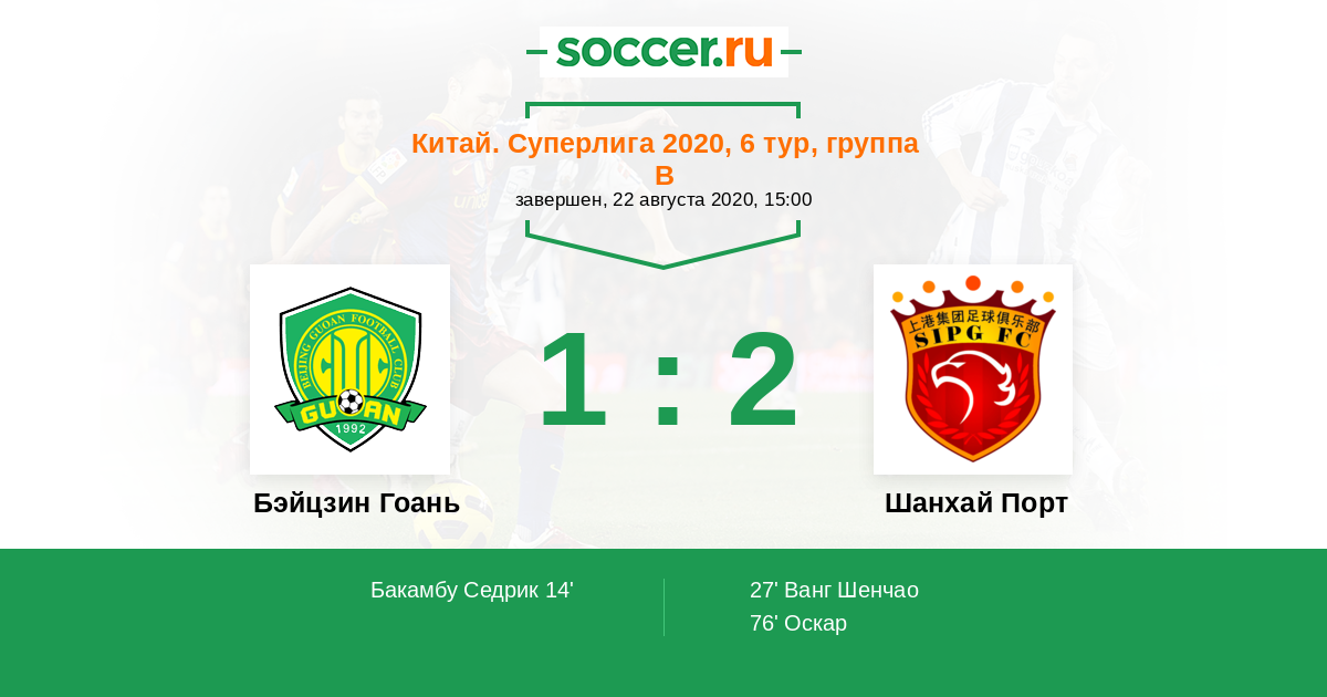 Протокол матча Бэйцзин Гоань против Шанхай Порт