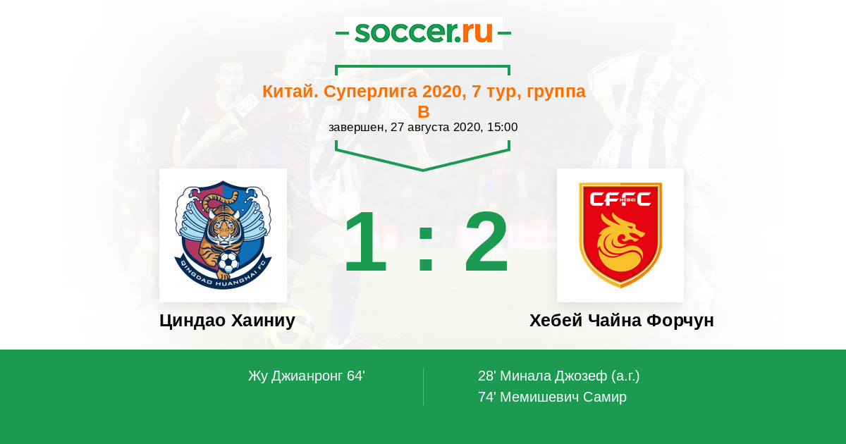 Протокол матча Циндао Хаиниу против Хебей Чайна Форчун