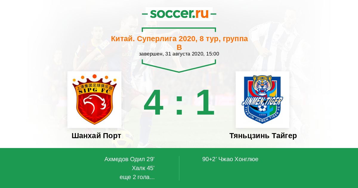 Протокол матча Шанхай Порт против Тяньцзинь Тайгер