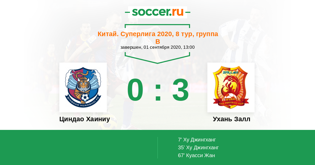 Протокол матча Циндао Хаиниу против Ухань Залл
