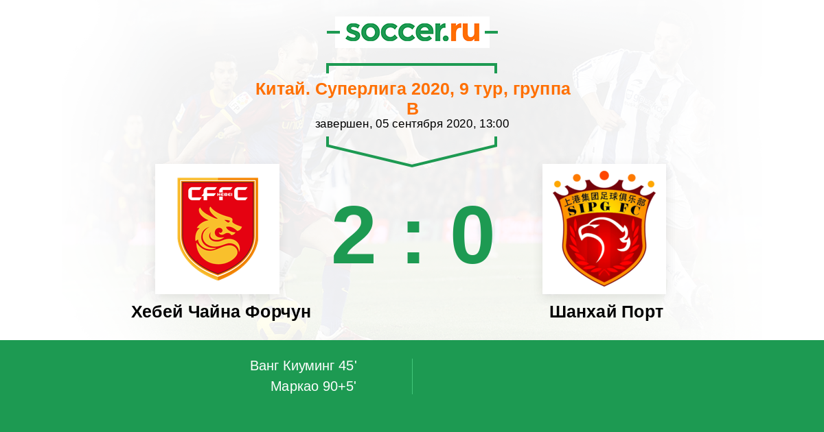 Протокол матча Хебей Чайна Форчун против Шанхай Порт
