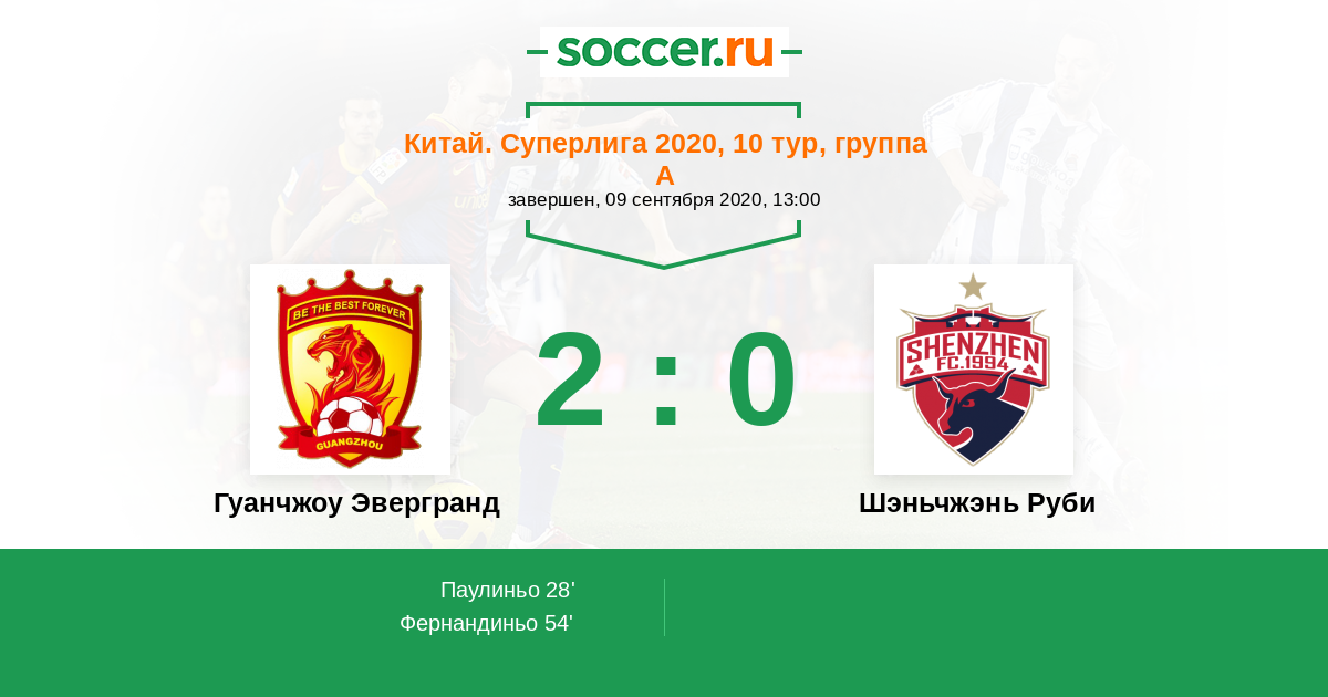 Протокол матча Гуанчжоу Эвергранд против Шэньчжэнь Руби
