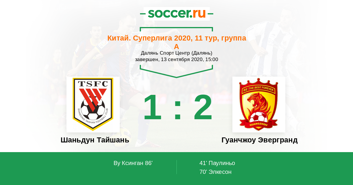 Протокол матча Шаньдун Тайшань против Гуанчжоу Эвергранд