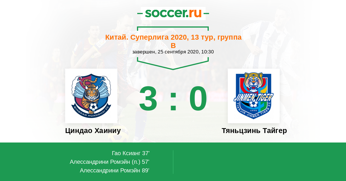 Протокол матча Циндао Хаиниу против Тяньцзинь Тайгер