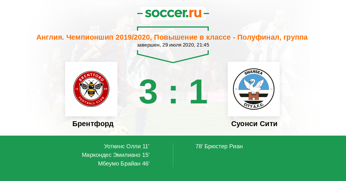 11' (1:0) Уоткинс Олли (11) (Йенсен Матиас (8))
