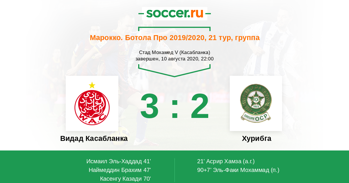 Протокол матча Видад Касабланка против Хурибга