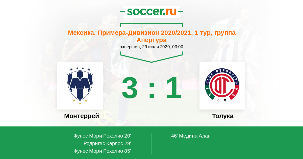 Протокол матча Монтеррей против Толука