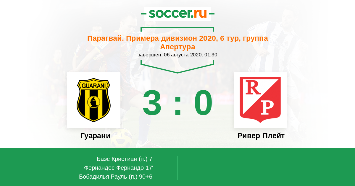 Протокол матча Гуарани против Ривер Плейт