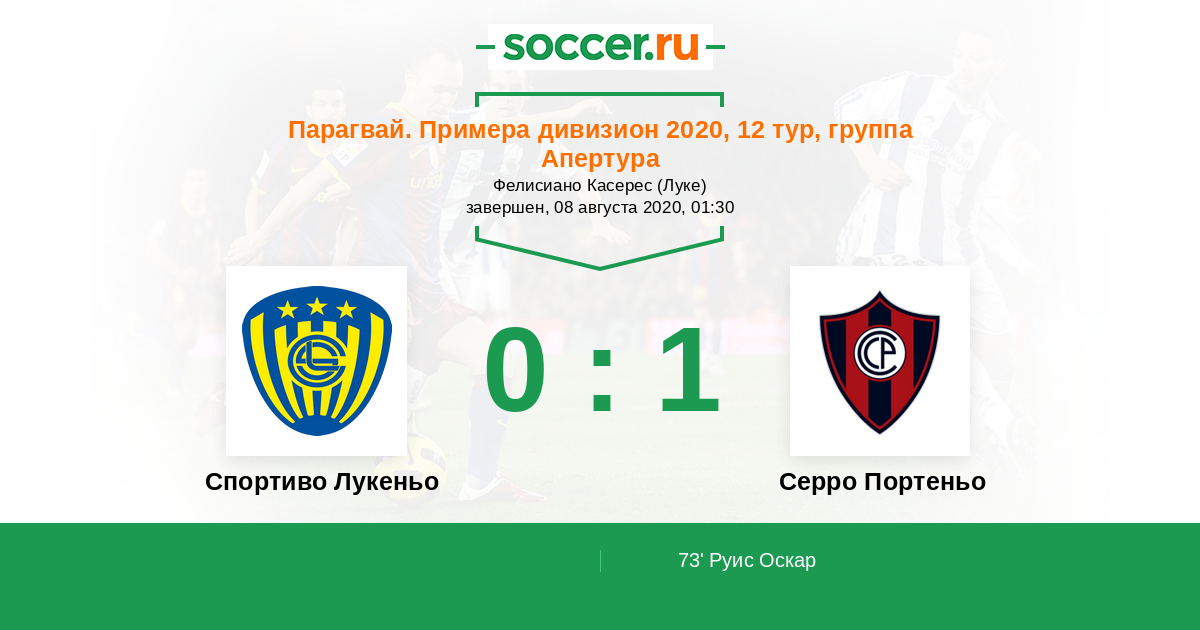 Протокол матча Спортиво Лукеньо против Серро Портеньо