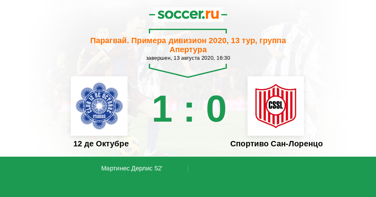 Протокол матча 12 де Октубре против Спортиво Сан-Лоренцо