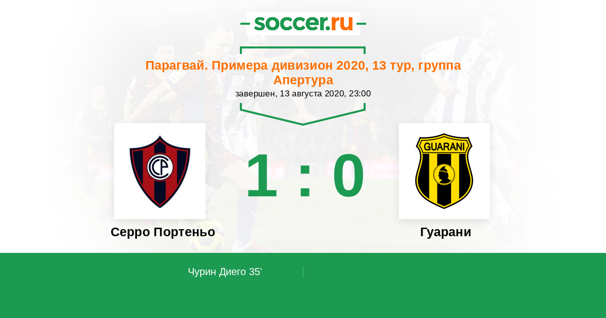 Протокол матча Серро Портеньо против Гуарани