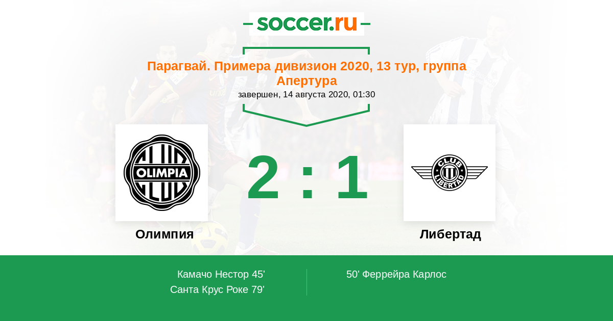 Протокол матча Олимпия против Либертад