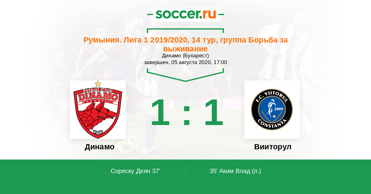 Протокол матча Динамо против Вииторул