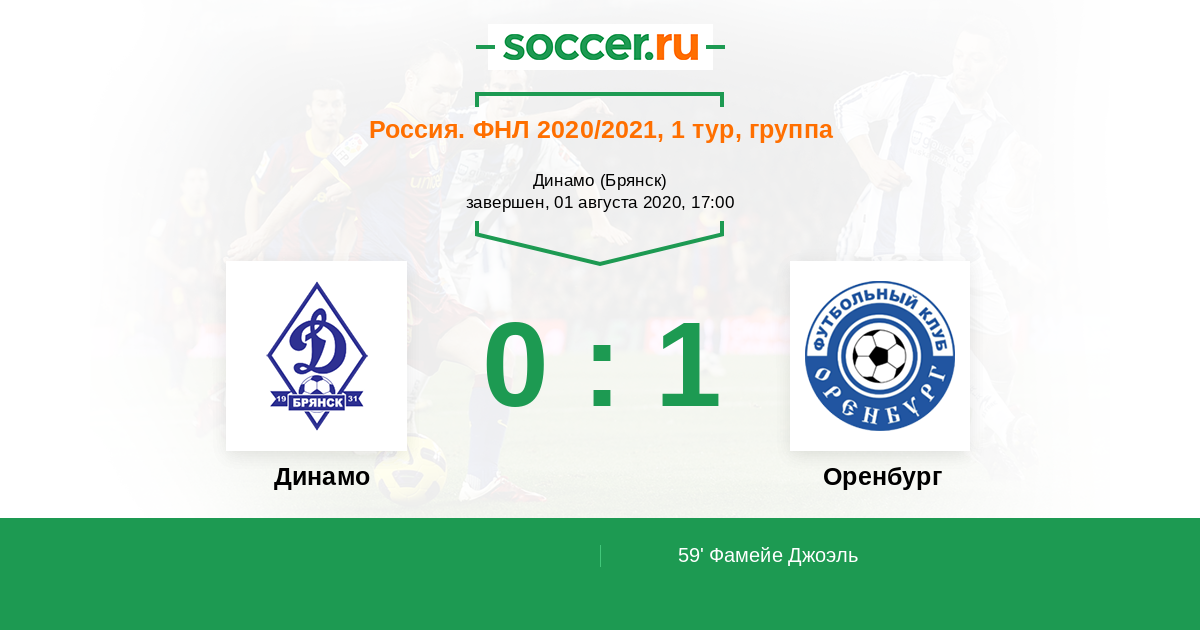 Протокол матча Динамо Брянск против Оренбург