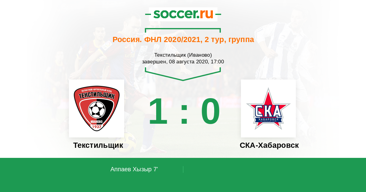 Протокол матча Текстильщик против СКА-Хабаровск