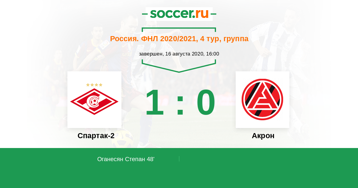 Протокол матча Спартак-2 против Акрон