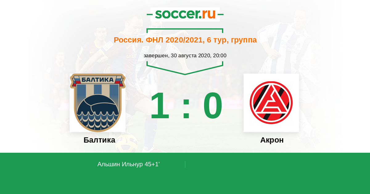 Протокол матча Балтика против Акрон