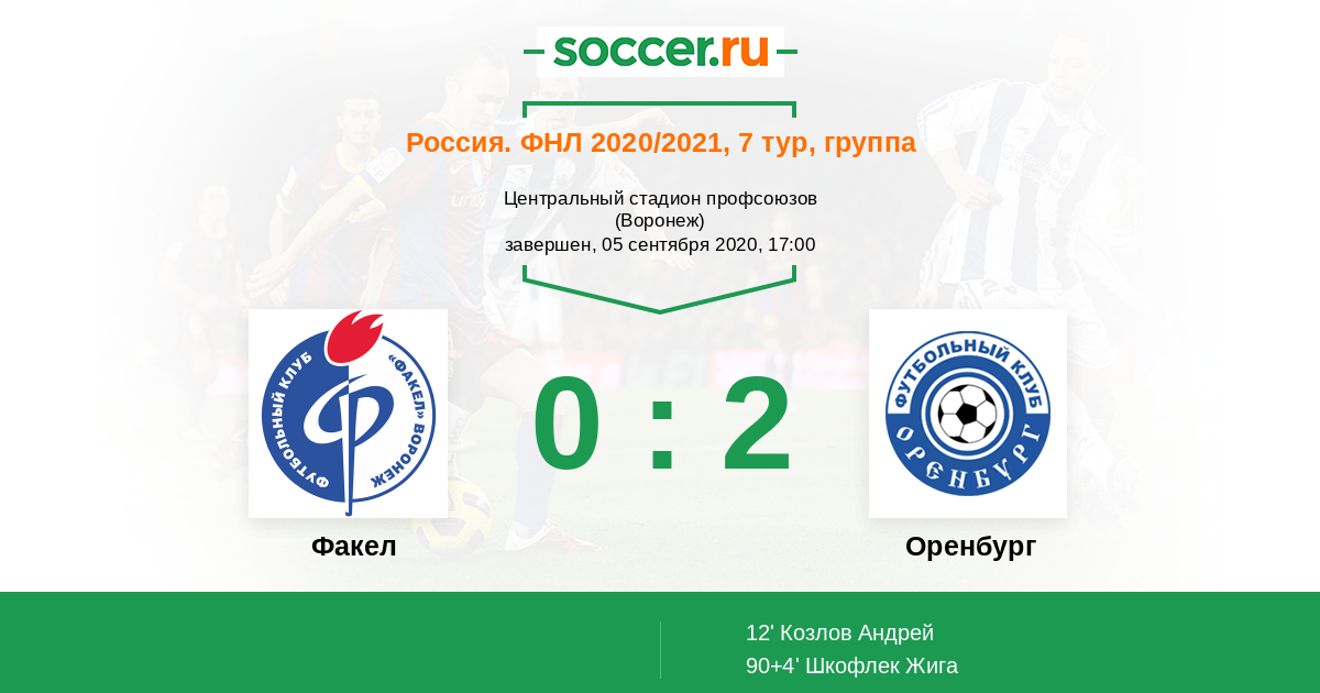 Протокол матча Факел против Оренбург