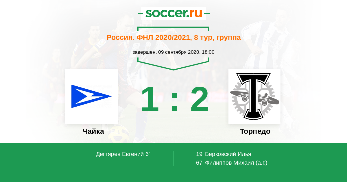 Протокол матча Чайка против Торпедо