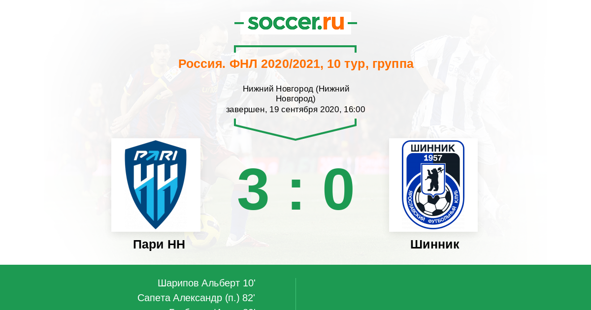 Протокол матча Пари НН против Шинник