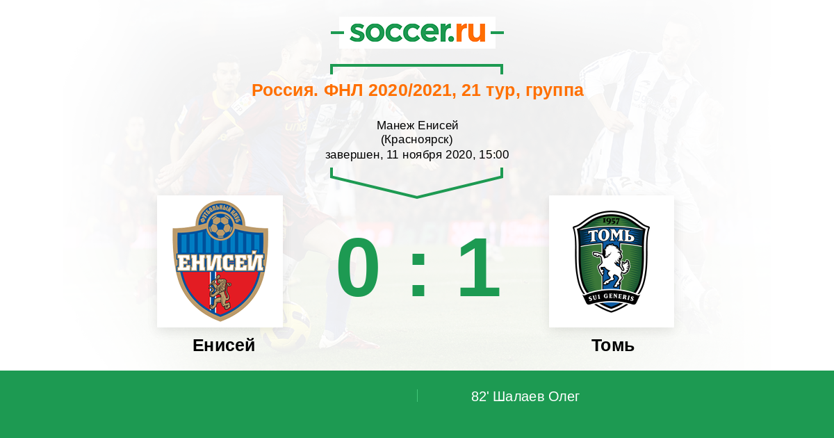 Протокол матча Енисей против Томь