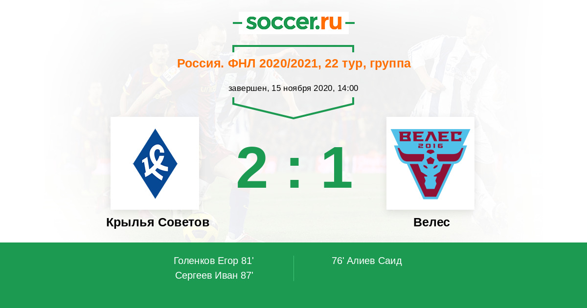 Протокол матча Крылья Советов против Велес