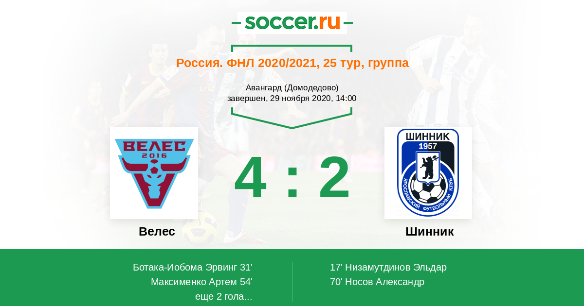 Протокол матча Велес против Шинник