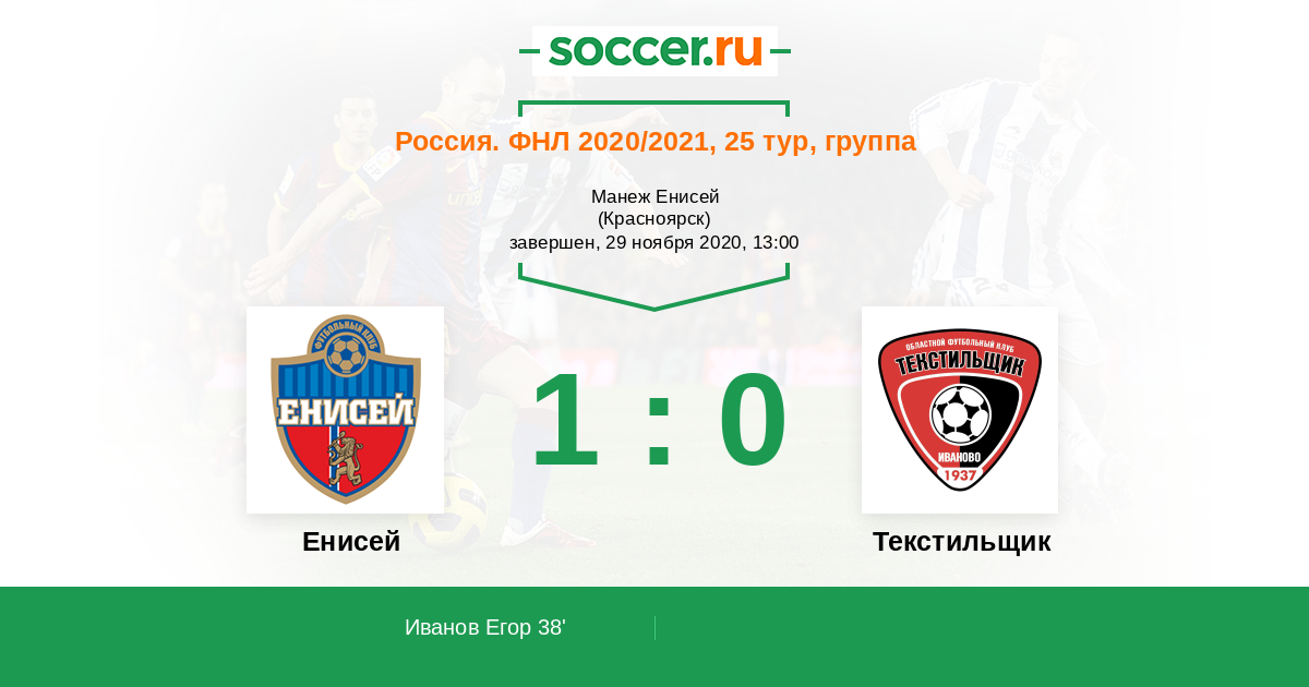 Протокол матча Енисей против Текстильщик