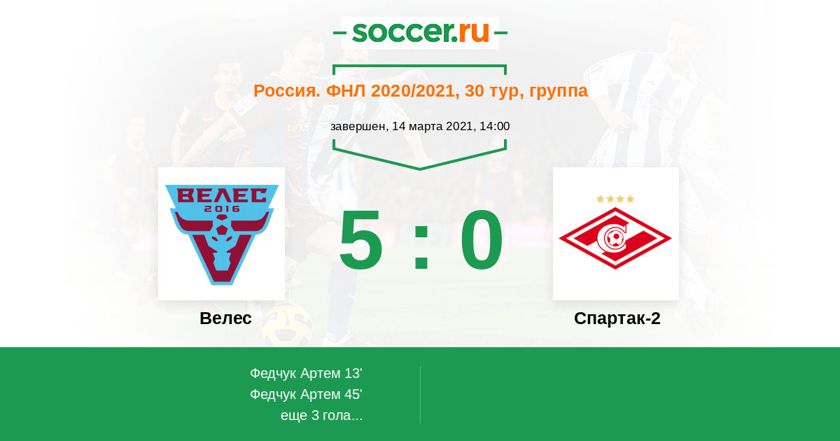 Протокол матча Велес против Спартак-2