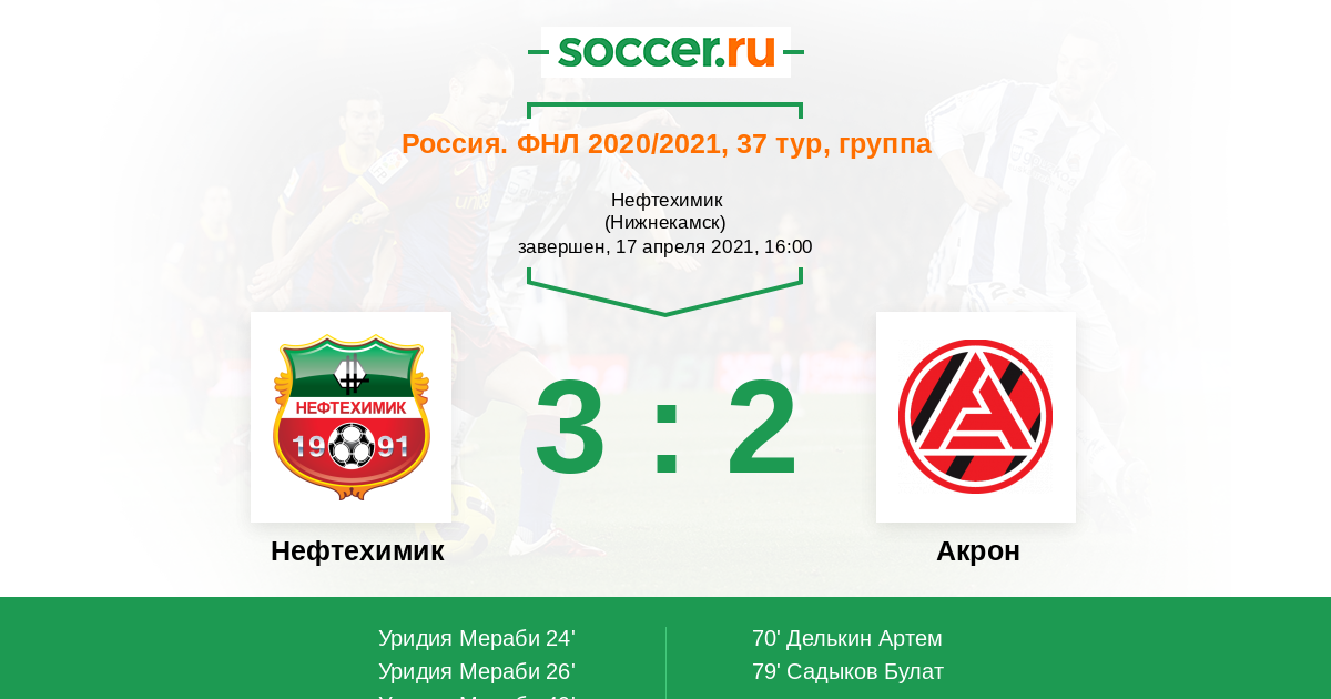Протокол матча Нефтехимик против Акрон