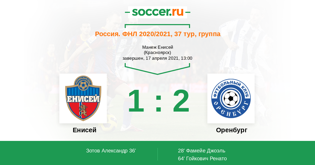 Протокол матча Енисей против Оренбург