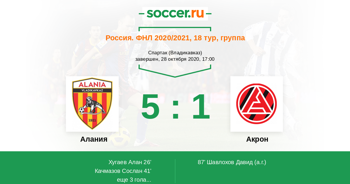 Протокол матча Алания против Акрон