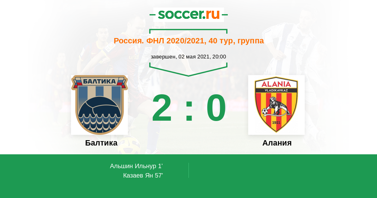 Протокол матча Балтика против Алания
