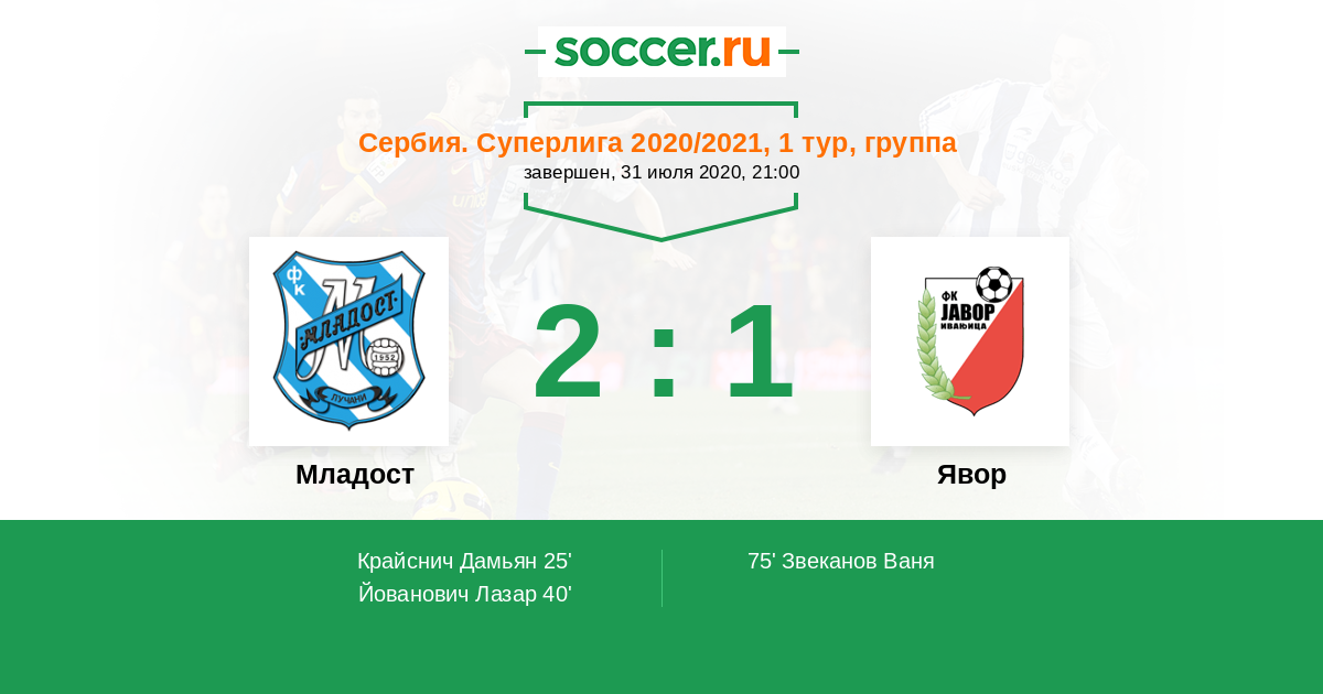 40' (2:0) Йованович Лазар (7)