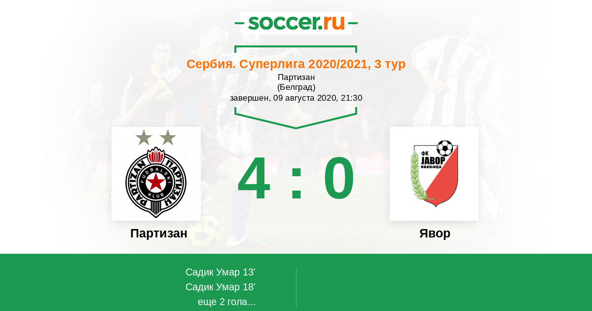 Протокол матча Партизан против Явор