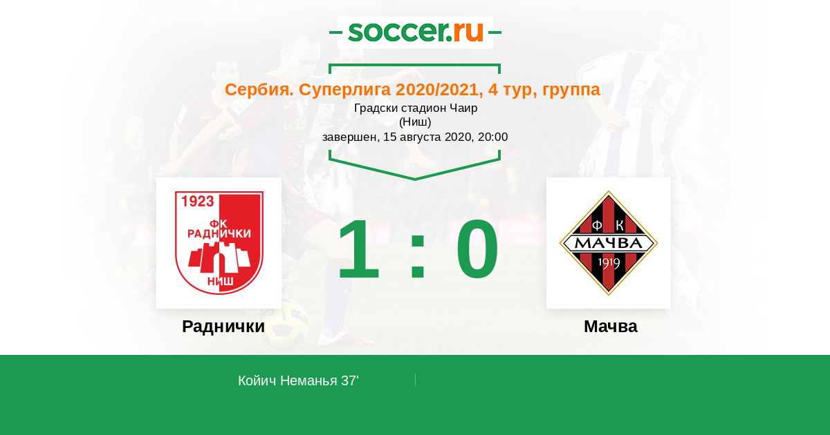 Протокол матча Раднички против Мачва