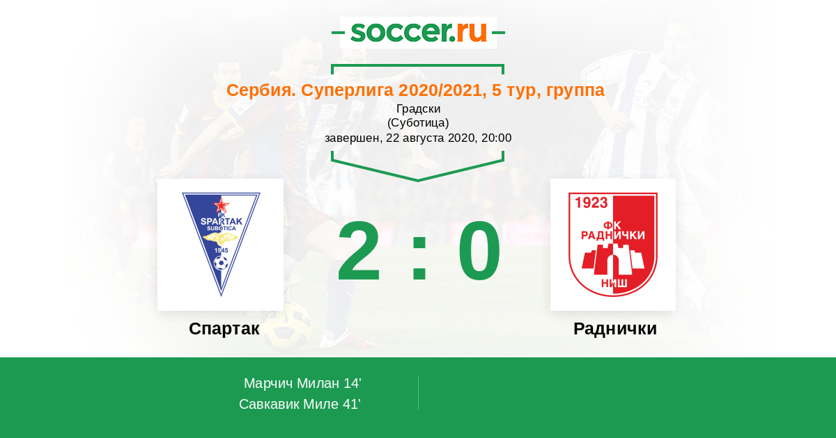 14' (1:0) Марчич Милан (31) (Шречкович Никола (7))