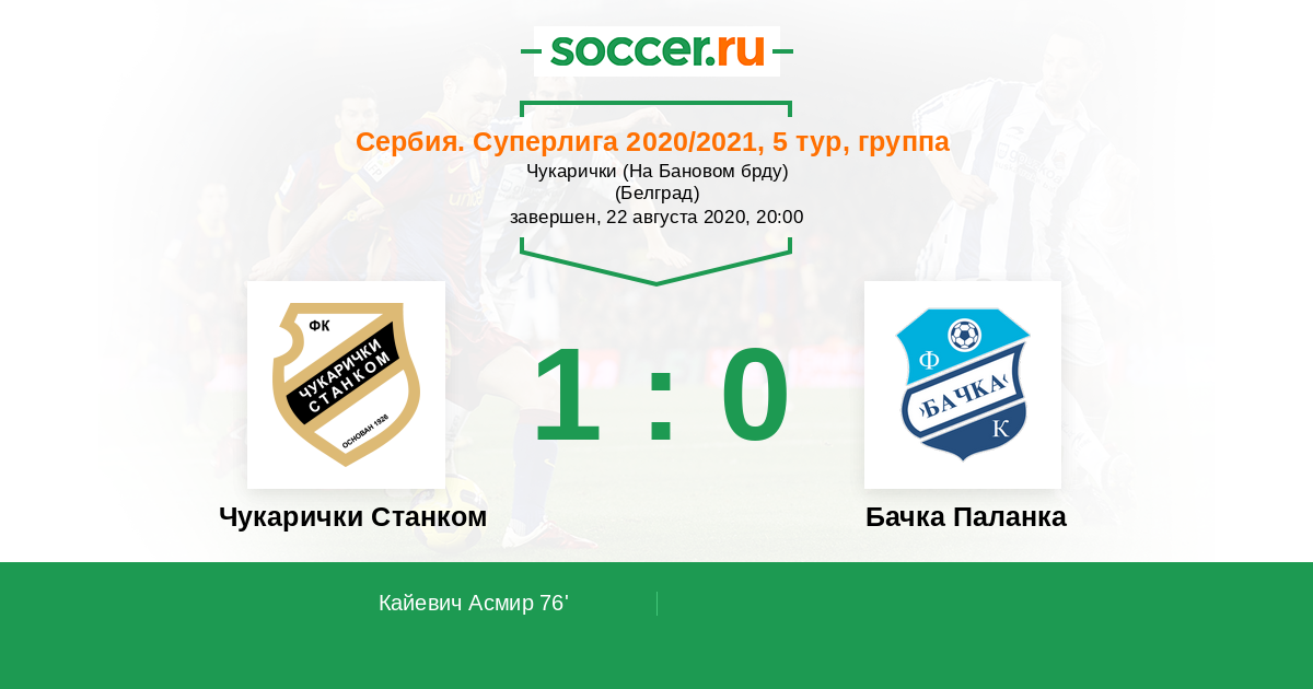 Протокол матча Чукарички Станком против Бачка Паланка