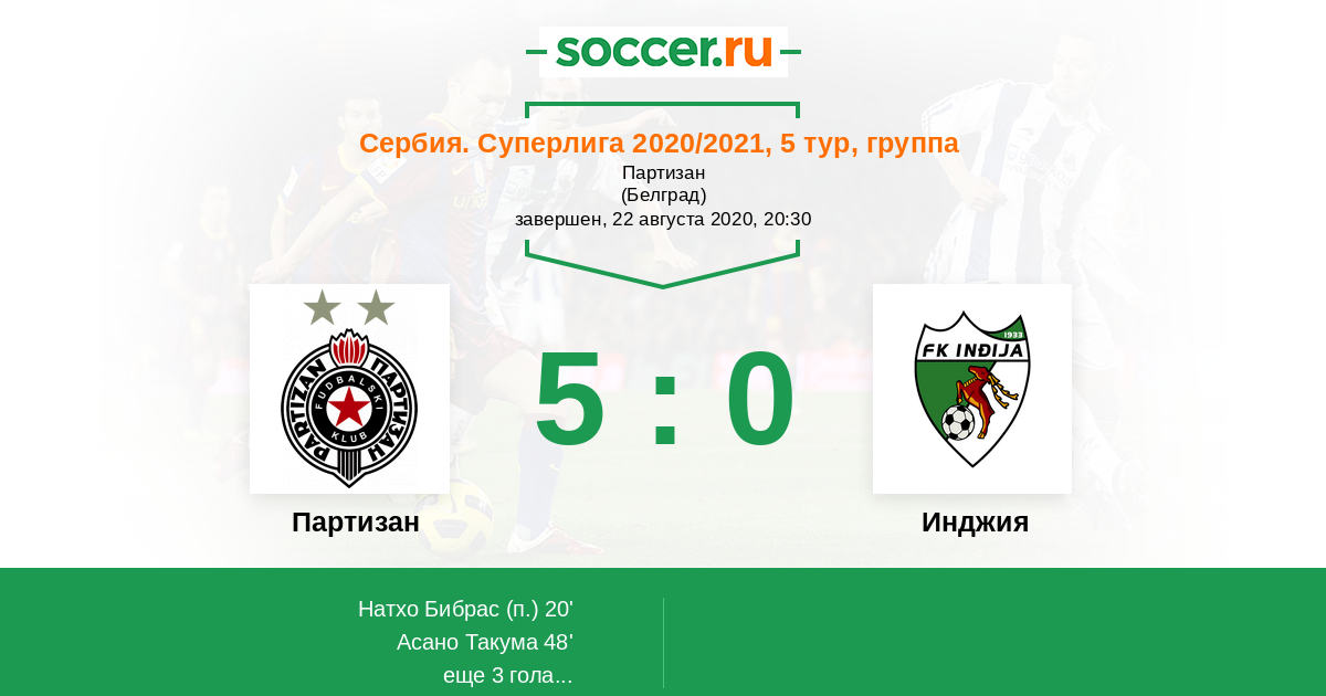 Протокол матча Партизан против Инджия