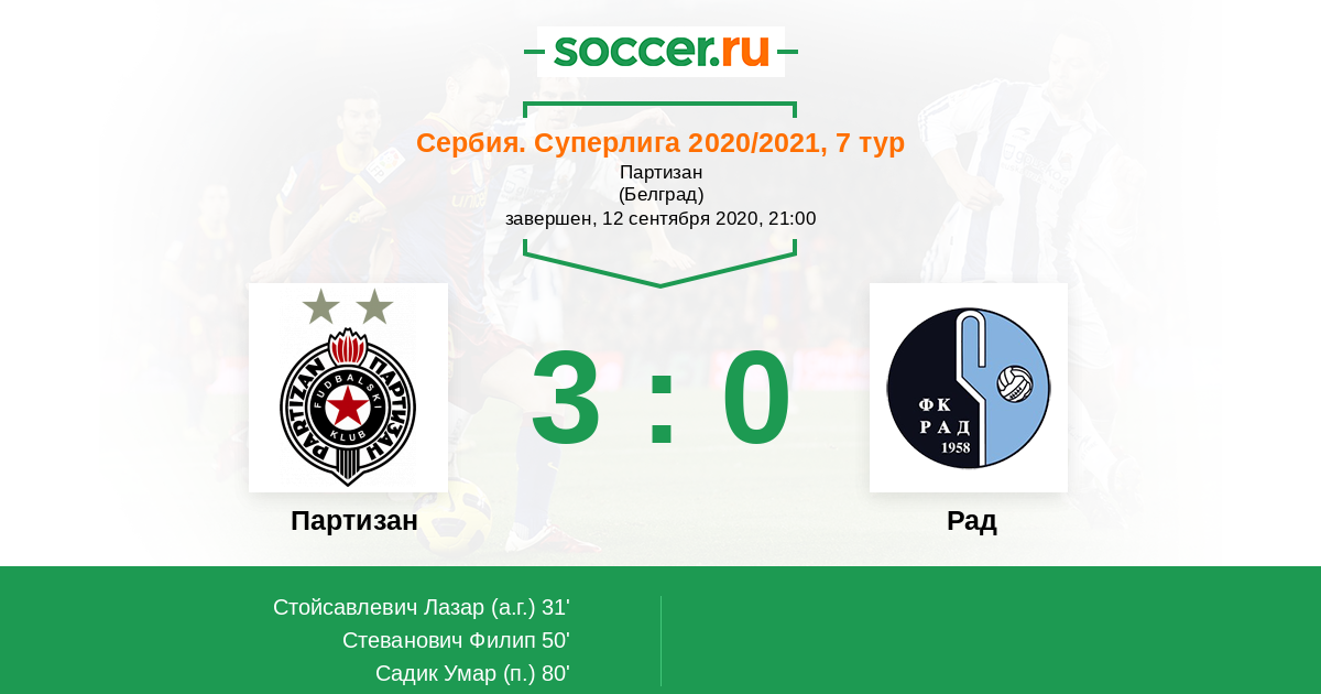 Протокол матча Партизан против Рад