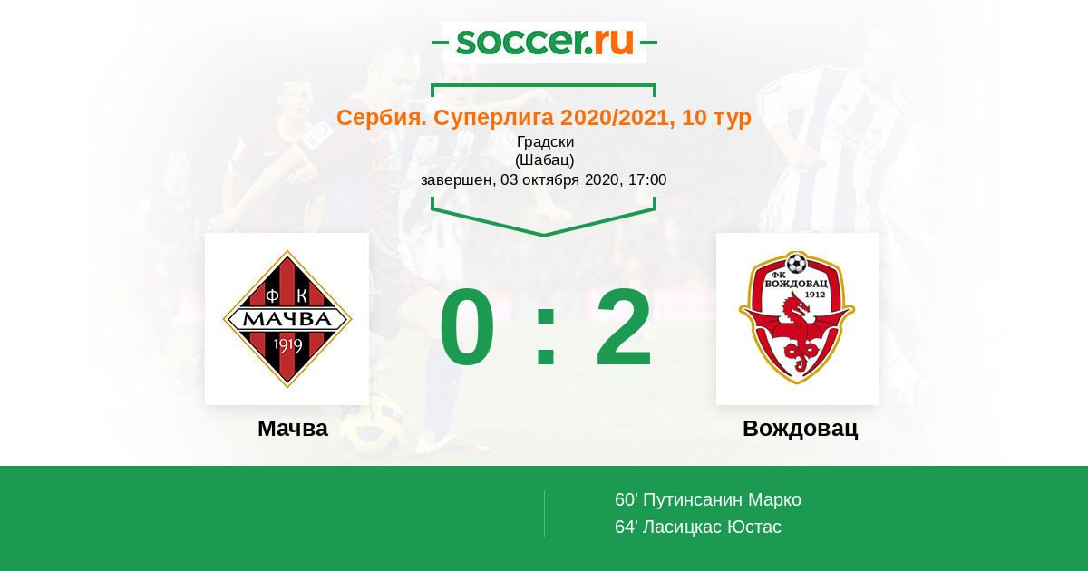 Протокол матча Мачва против Вождовац