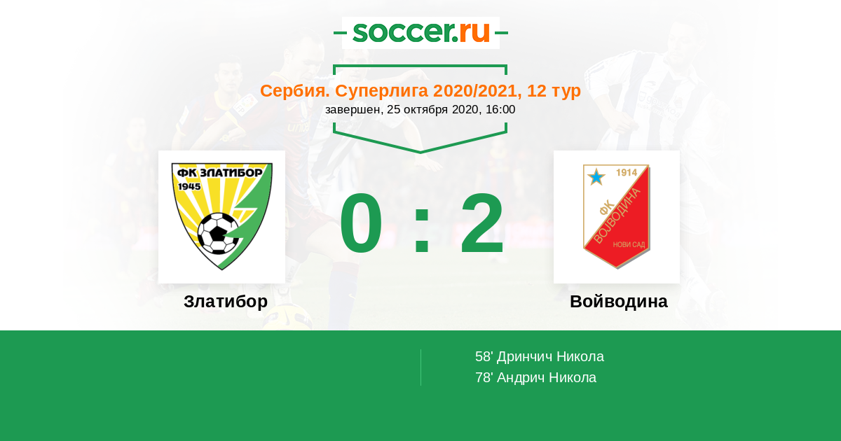 Протокол матча Златибор против Войводина