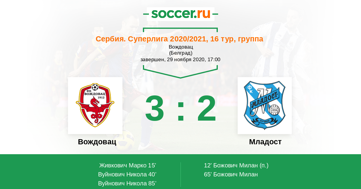 Протокол матча Вождовац против Младост